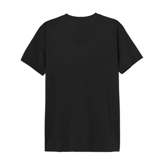 Camiseta de manga corta de color negro, la forma del cuello es redonda y el corte es recto. El estampado es frontal y centrado y es de la saga Star Wars logo en negro sobre negro.