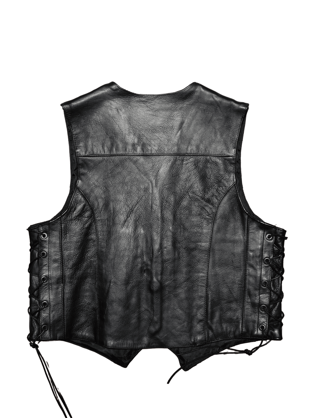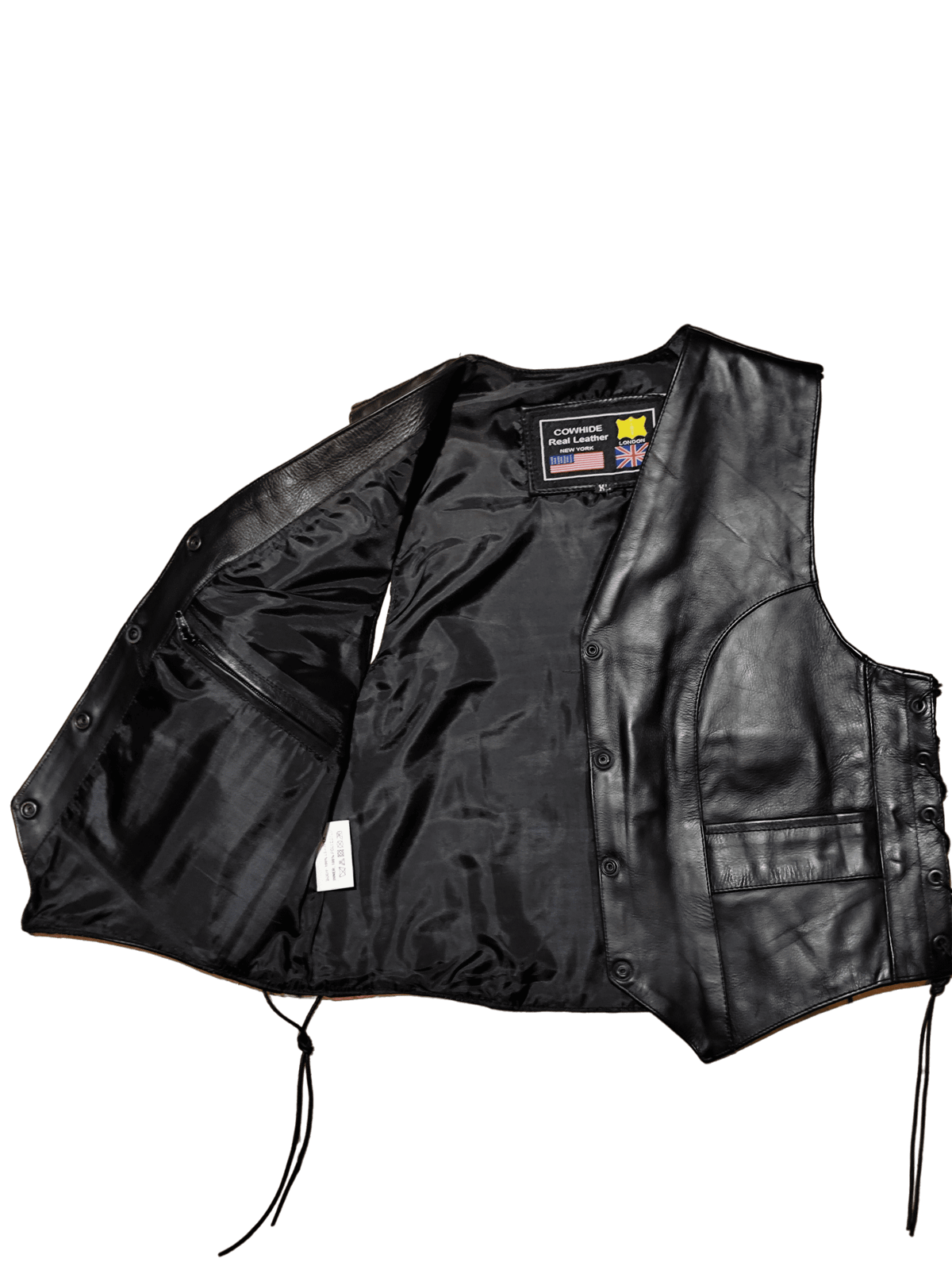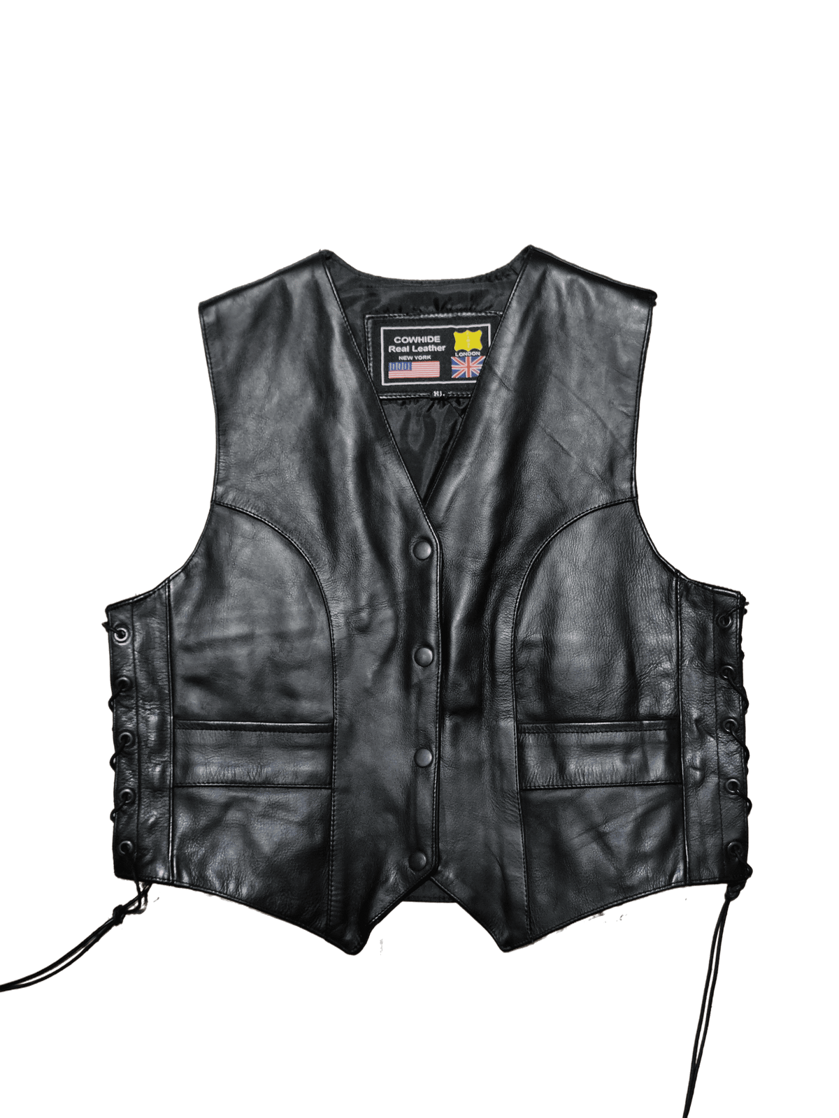 Chaleco cuero negro chica de piel de vaca clasico con cordones laterales