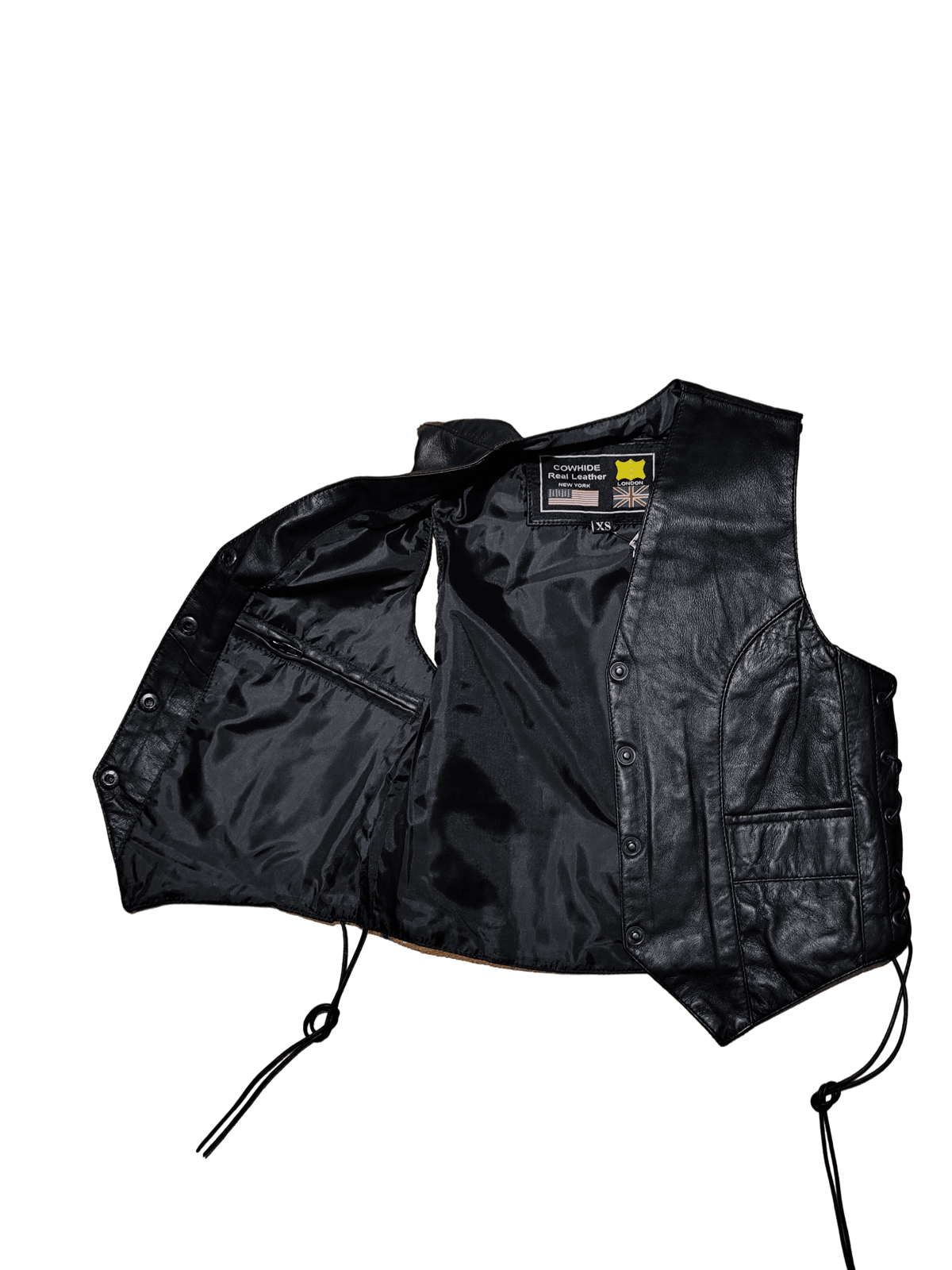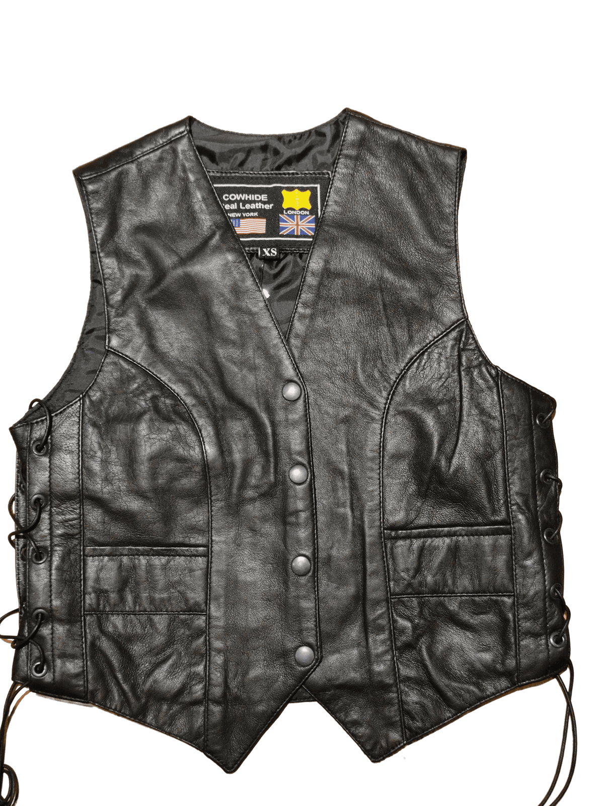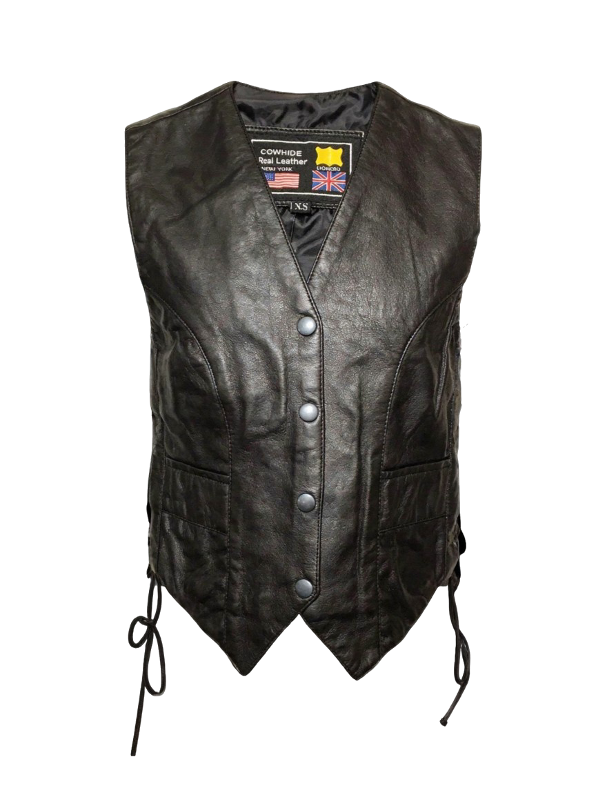 Chaleco cuero negro chica de napa clasico con cordones laterales piel suave y ligera