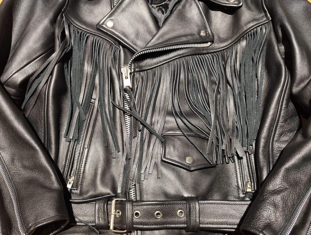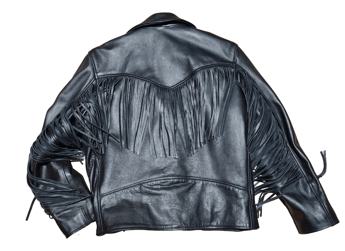 Chaqueta cruzada cuero con flecos en negro de piel de vaca tallaje de chico