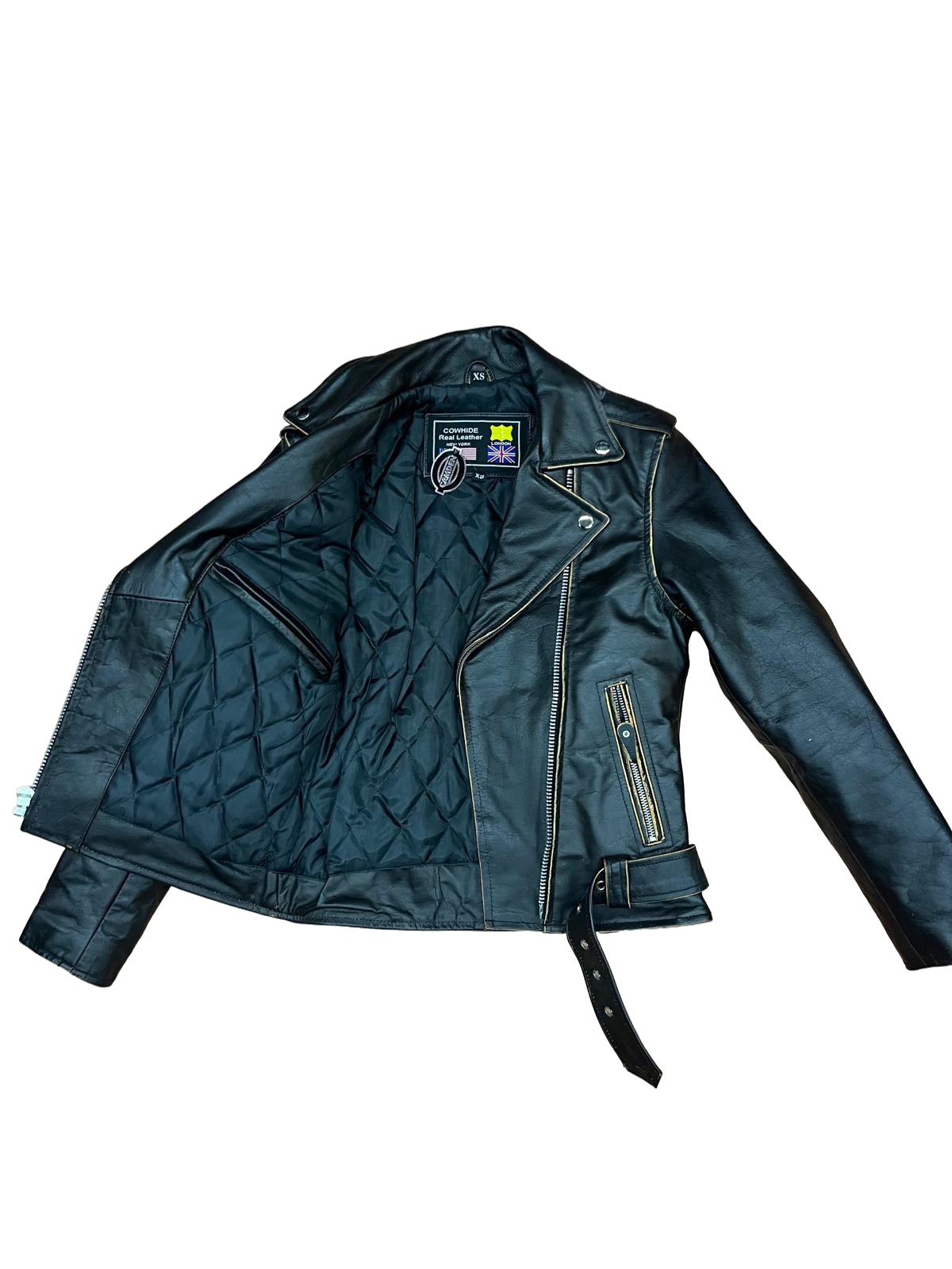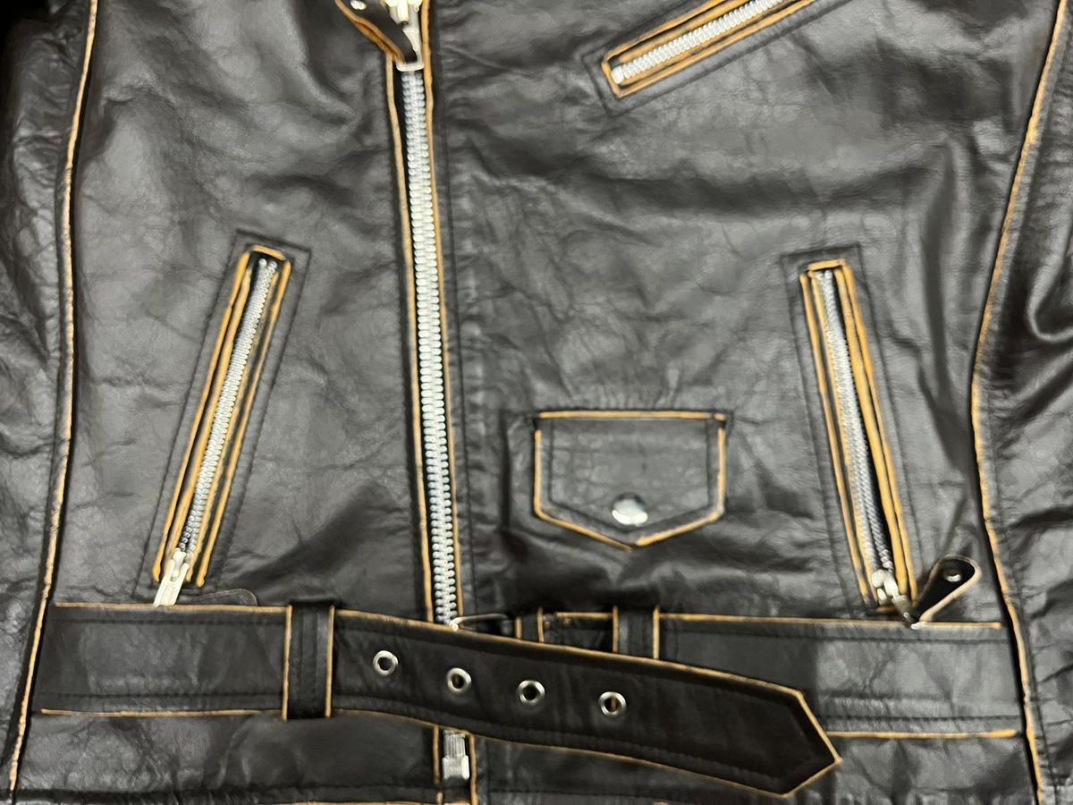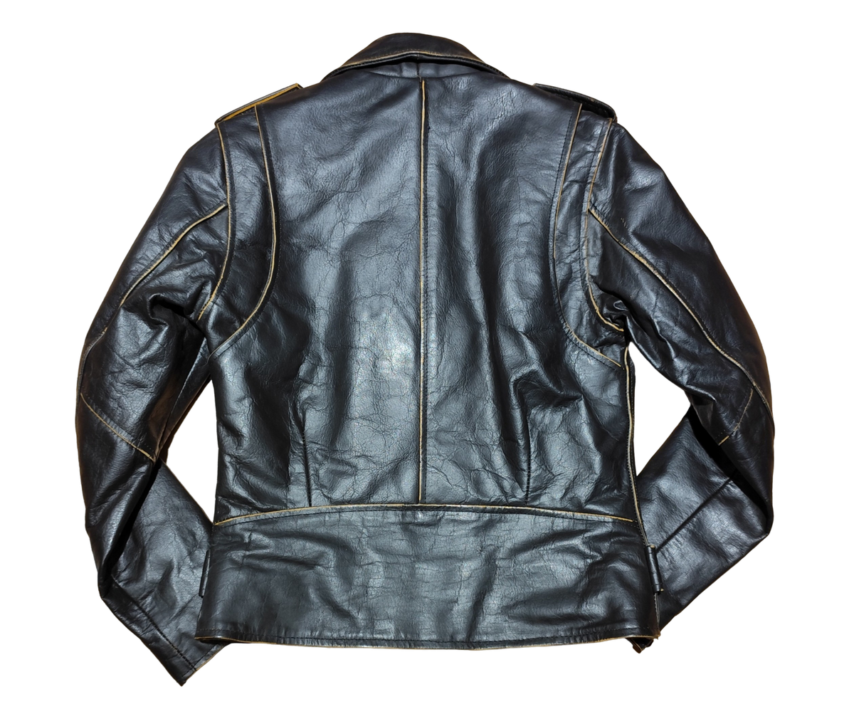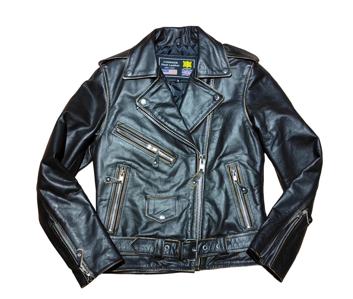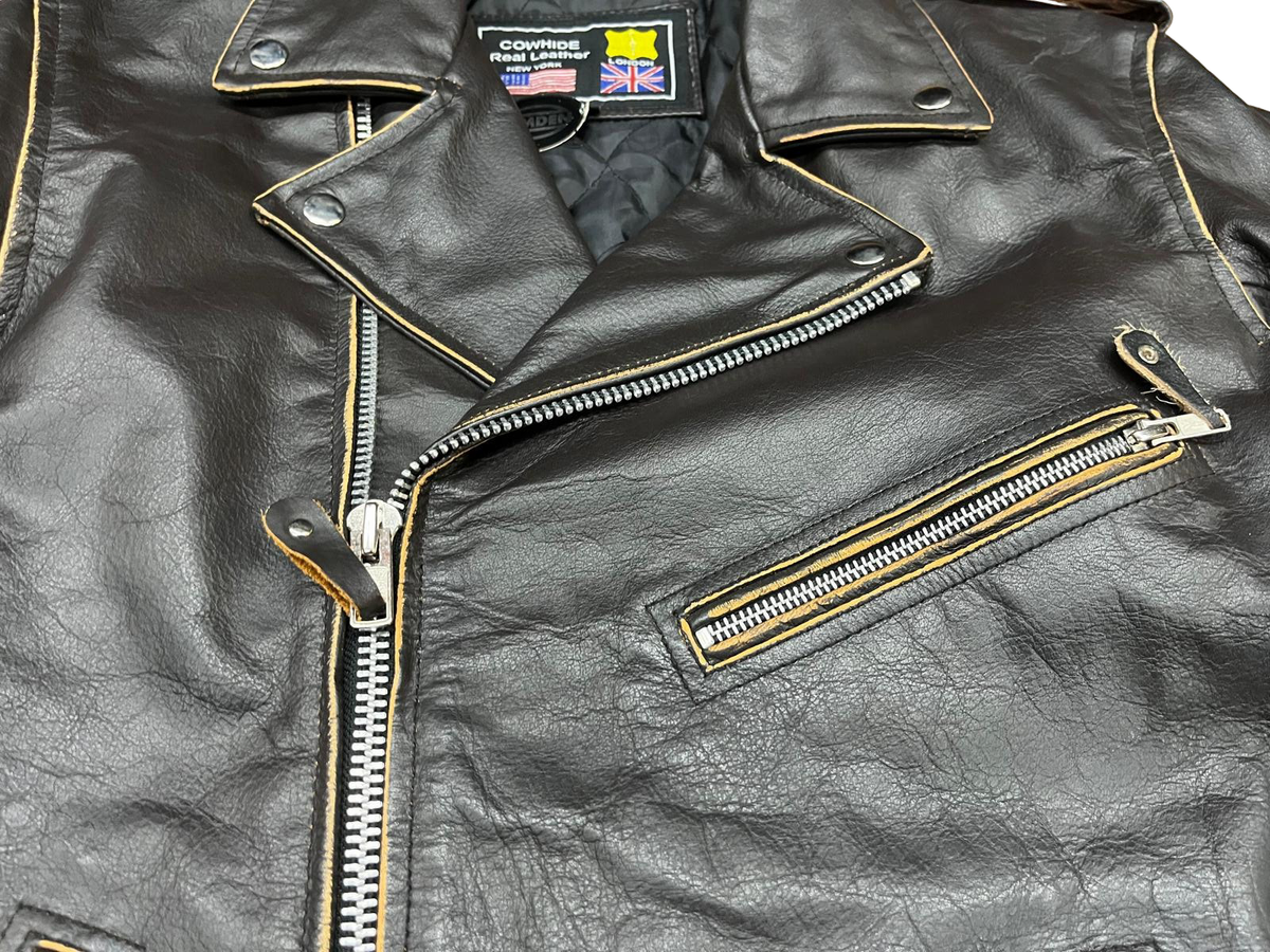 Chaqueta cruzada entallada marron de piel de bufalo con aspecto desgastado